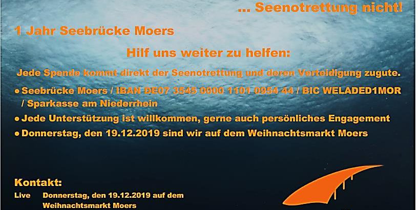 Nov.152019UncategorizedVeranstaltungenAnlässlich des einjährigen Bestehens der Seebrücke Moers gibt es einen Spendenaufruf an alle Unterstützer. 15. November 2019Related PostsFlüchtlingsrat spendet 1.000.- € für das Café Welcome im ASBÄR15. November 2019Willkommensportal des Kreises Wesel31. Januar 2019Lichterdemonstration am 1. Februar 201925. Januar 2019Einladung zur nächsten Sitzung des Flüchtlingsrats Moers am 25.1.201925. Januar 2019Rundbrief Januar 201911. Januar 2019Seebrücke: Moers soll ein sicherer Hafen werden25. November 2018